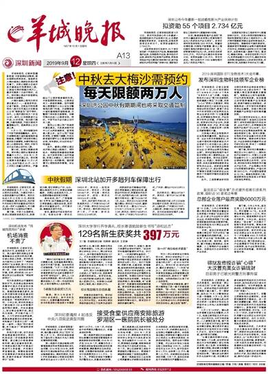 羊城晚报讯 记者林园摄影报道:中秋假期近在眼前,国庆假期也即将到来,准备前往大梅沙海滨公园游玩的朋友得注意了,目前公园部分区域开放并继续实行免费预约入园,公园每天预约限额为两万