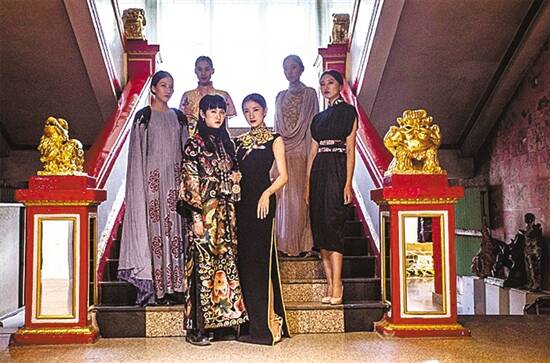 模特正在展示香云纱服饰 |