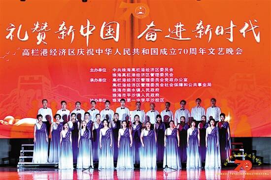 演员们倾情演唱,表达了对祖国繁荣昌盛、人民安居乐业的美好祝福。视觉秀《激情魔方筑梦高栏》,相声《奋进的高栏》表达了港区人民奋发有为、昂扬向上的精神风貌……优美的舞蹈,动听的歌声,赢得了现场观众的阵阵掌声。最后,全体观众及演职人员合唱“五星红旗迎风飘扬, 胜利歌声多么响亮……”,晚会在《歌唱祖国》熟悉而激昂的乐曲声中落下帷幕。(文/图 郑达 高轩)