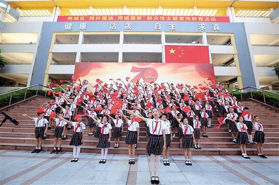 通讯员 李万里 叶丽雯 9月23日上午,佛山市禅城区举行“同升国旗、同唱国歌”群众性主题宣传教育活动,全区逾13万群众、师生,百所学校“同升国旗、同唱国歌”。 逾13万人高唱国歌 “起来!不愿做奴隶的人们……”伴随着国旗护卫方队整齐铿锵的步伐以及雄壮激昂的《义勇军进行曲》,禅城区四套班子、退伍老兵代表、全国“人民满意的公务员集体”代表、禅城好人、禅城大工匠、劳动模范等先进典型代表,禅城区新时代文明实践志愿服务队代表等超过2500人,在活动主会场佛山实验学校激情万丈地高唱国歌。 与此同时,在南庄中心小学、佛山市第四中学、同济小学三个镇街分会场、各学校分会场,逾13万人各界市民群众、师生同升国旗、同唱国歌,鲜艳国旗飘扬、激昂的歌声传遍禅城上空。 讲好身边人身边事 活动现场,“庆祝中华人民共和国成立70周年”纪念章获得者、全国优秀共产党员、中国好人、全国模范退役军人潘柱升,中国好人、全国优秀教师、广东省劳动模范苏永善,佛山市实验学校学生曾谦涵进行国旗下的讲话。据悉,主办方在线上举行“我和我的祖国”国旗下讲话展播活动,不少市民通过线上表达自己的爱国之情。仅仅几天,活动收到作品超过2000份。 一直以来,禅城区十分注重讲好身边人故事,从好人宣讲、大工匠思享会等形式多样的宣讲,到挖掘禅城红色资源,打造“新时代红色文化讲堂”和“禅城市民圆桌学习会”,一个个生动感人的禅城故事传遍大街小巷,让市民沐浴文明新风。接下来,禅城区将结合“不忘初心、牢记使命”主题教育,整合铁军公园、罗登贤事迹展览馆、吴勤烈士陵园、园区红色文化小剧场等红色文化资源,举行多场新时代文明实践活动,弘扬爱国主旋律。 培育时代新人传承红色基因 “我们是时代新人,祖国的未来要靠我们来担当来创造。”来自佛山市实验学校的学生曾谦涵表示,今后会更加努力学习,为祖国建设奉献青春。全区百所学校同步升国旗、唱国歌,培育未成年人爱国情怀,引导他们扣好人生第一粒扣子。 当天还举行“禅城红色印记”主题展览,以“不忘初心、铭记历史”为主题,介绍发生在禅城区内的部分历史事件、佛山籍党史人物和重要革命遗址(遗迹)。活动结束后,区文明办还在佛山实验学校组织了“向国旗敬礼”网上签名寄语活动。 此外,禅城区还组织开展“我和我的祖国·歌咏活动”,优秀童谣传唱等系列活动,结合“我们的节日”,开展重走“红色地标”、网上祭英烈等系列活动,通过大力传承红色基因、加强国防教育,将社会主义核心价值观融入校园文化,立德铸魂,着力培育时代新人。 据悉,为庆祝新中国成立70周年,禅城区将结合新时代文明实践工作,推出《歌唱祖国》宣传视频,以歌唱的形式礼赞伟大祖国,绽放爱国热情,同时,推动“七个一百”精品项目下基层,开展“爱我中华—南粤百园庆国庆”主题游园活动禅城区专场,在南风古灶片区(石湾公园)、广东粤剧博物馆(兆祥公园)举办以粤剧、醒狮、舞蹈乐器、陶笛表演等爱国主义主题文艺快闪活动。