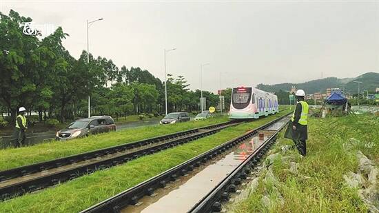 高明现代有轨电车示范线首期列车进行动车调试 |