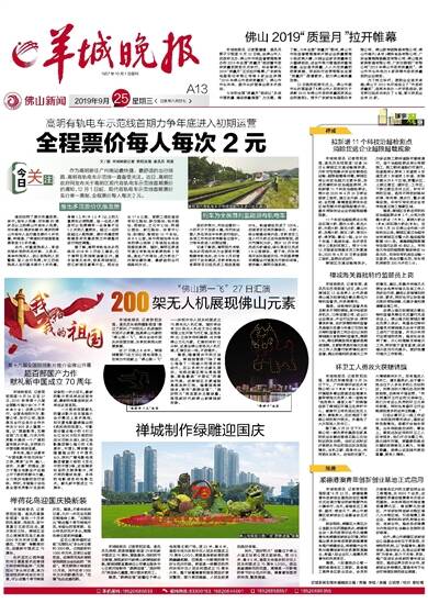 羊城晚报讯 记者欧阳志强、通讯员朱晓燕摄影报道:错过了深圳、广州的无人机表演的市民不必羡慕,独具佛山元素的“佛山第一飞”,将与全体市民共庆祖国华诞、共享民族荣光浓厚氛围。