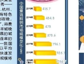 楼宇为屏,灯光为墨,科技为笔。刚刚过去的国庆黄金周,全国多地上演灯光秀——北京、上海、广州、重庆、杭州、合肥……纷纷亮起富有特色的节庆灯光。从白天到夜晚,游客游玩的时间延长了,消费新动能得到有效释放。羊城晚报记者注意到,蓬勃发展的城市灯光秀背后,还有一连串的数字值得人们思考——我国景观照明产业规模正以平均每年超20%的增长率快速发展,预计2019年市场规模将突破千亿元大关。