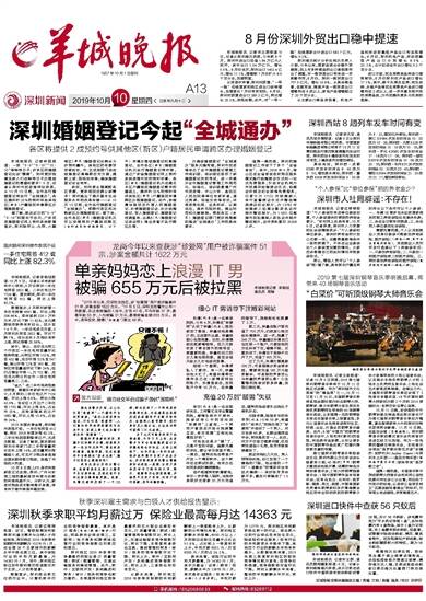 “2019年以来,仅深圳龙岗区,涉‘珍爱网’用户被诈骗案件51宗,涉案金额1622万元。”10月8日,深圳龙岗警方公布一则数