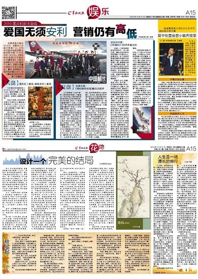 2019年10月10日/星期四/ 娱乐编辑部主编/责编 邵梓恒 / 美编 杜卉 / 校对 谢志忠