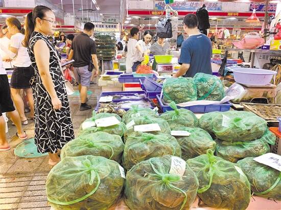 今年大闸蟹个头较大 在虹桥市场的水产档区,商家都把大闸蟹放在摊位的显眼位置,不少市民围着询价。其中一间水产店铺前堆满着一筐筐的大闸蟹,老板一边帮顾客用草绳捆绑着活蟹,一边吆喝着:“太湖蟹1两半的19块一只,2两半的30块一只,买大的更实惠些。” 买菜的王姨被吆喝声吸引过来了。“今年的大闸蟹明显个头要大,往年同样的价钱就买不到这么大,我买了2只,打算今晚清蒸炖蛋。”王姨说,9月下旬大闸蟹刚上市时,她就买过一次,那时没有这么大,现在10月份的蟹,个个肥美大个、蟹黄饱满。 同样,在大明塘市场,大闸蟹也摆在最显眼位置。来自湖北、江苏等地的大闸蟹价格存在较大差距,价格从6元一只到30元一只不等,大多数母蟹约60元一斤,公蟹约50元一斤,其中太湖蟹、阳澄湖蟹2.5两规格的平均在30元一只。有商家表示,这段时间来买蟹的消费者尤其多,他们每天都要等空运过来的蟹。“现在海鲜也肥,来买海蟹和大闸蟹的人最多,今年的大闸蟹肥美又饱满,来看的市民基本都会入手几只。” 开湖晚批发价更便宜 “由于今年大闸蟹9月21日开湖,捕蟹较晚,错过了中秋档的节日经济,使得江苏地区的大闸蟹批发价格较往年低了四成左右。”但在东莞从事大闸蟹批发生意的江苏人金先生说,新鲜的大闸蟹从江苏空运到东莞市场,途中的运输成本增加,使得东莞市场上的大闸蟹价格变化不大,基本与往年持平。 除了市场实体店铺外,随着网络和物流的不断发展,不少市民选择从网络上购买大闸蟹。“大闸蟹最出名莫过于阳澄湖的,所以我选择在一些口碑较好的旗舰店购买。”市民田先生说,前几天他在网上购买了一箱来自阳澄湖的大闸蟹,差不多一天的时间就收到货了,而且12只蟹都很新鲜,含有公蟹、母蟹两种,大小为3.5~4两,加起来共花费246元,差不多合20块钱一只,而且大闸蟹膏满肉肥,鲜美嫩滑。“从网上购买的时候正好商家搞活动还送了优惠券,感觉价格比市场上买还便宜,趁着便宜,我还会再网购几次吃个过瘾。”