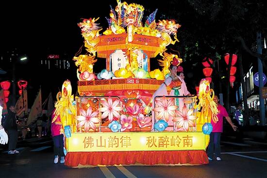 ▲秋色巡游中的彩车《佛山韵律·秋醉岭南》 |