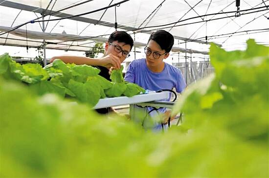 据介绍,鱼菜共生联合气雾栽培植物循环工厂项目是江门市农业科技创新中心实施的科研型创新创业孵化项目。该项目由江门市农业科技创新中心科研人员与罗伟特、梁立锋、谭慧敏三位90后香港大学生组成科研团队,共同开展鱼菜共生现代化生态蔬菜生产研究。该项目通过集约式循环水养殖鱼类,富营养的水体用于水培蔬菜的种植,而经过蔬菜吸收净化的水体又返回鱼池,从而实现养鱼不换水、种菜不施肥,是一种典型的循环绿色农业。 2016年,该项目进驻江门现代农业示范基地,获得免费提供400平方米大棚,还申请了5万元“市长机动资金”扶持。2017年该项目又获得了1200万港元的投资。经过三年的实验,鱼菜共生联合气雾栽培植物循环工厂项目采集水质数据超过3000组,培育蔬菜品种超过220种,申请国家发明专利7项,国家实用新型专利3项,并已成为国内研究时间最长、科研成果最丰富、知识产权完全自主的鱼菜共生项目。 据悉,三位香港青年中男生罗伟特、梁立锋都是1992年出生,分别毕业于香港中文大学和香港理工大学;女生谭慧敏比他俩大一岁,毕业于香港树仁大学。在项目中,三个人的分工很明确,谭慧敏养鱼,罗伟特种菜,“理工男”梁立锋研发、设计水循环系统。罗伟特表示,团队来到江门创新创业主要有两个原因,首先江门是粤港澳大湾区的农业大市,农业发展成就显著;其次江门是著名侨乡,与香港联系密切、文化相融,营商环境开放自由,这为农业科创营造了良好的条件和氛围。