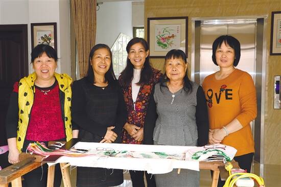 从左往右依次是:绣女庞慧玲、彭景芯、梁惠冰、彭凤玲、彭彩英 |