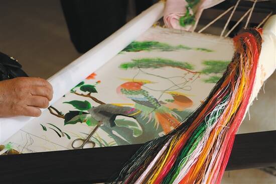 绣架上,正在创作中的刺绣作品 |