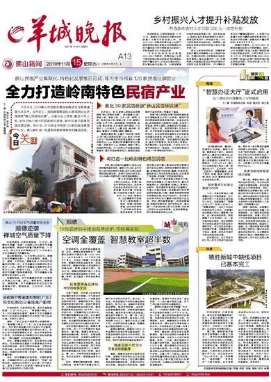 11月14日,2019佛山市民宿发展现场推进会在顺德逢简水乡召开。当天会上,润岚雅居等首批30家民宿企业获得颁授“佛山民宿标识牌”。记者从会上获悉,截至10月上旬,全市已纳入统计的民宿有60多家,