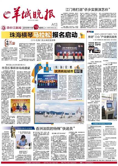 羊城晚报讯 记者钱瑜、通讯员吴燕纯摄影报道:11月18日,羊城晚报记者从珠海九洲控股集团获悉,中国帆船帆板运动协会于日前在海南省海口市举办2019中国帆船年度盛典系列活动,在全国242家