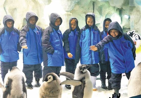 11月25日,数位学生代表来到珠海长隆海洋王国,与今年新生的小帝企鹅交朋友。学生代表们换上小小保育员的服装,进入企鹅馆内,给小帝企鹅们喂食。 当得知小帝企鹅成活率很低并且对环境要求很严时,学生们纷纷表示要爱护好环境,保护动物。 模拟野外条件创造繁殖环境 据悉,今年,珠海长隆海洋王国成功繁育8只小帝企鹅。记者在现场看到,此次新生的小帝企鹅宝宝萌态十足、憨态可掬。据介绍,目前,小帝企鹅的生理指标稳定、进食正常。资料显示,刚孵化出的小企鹅身上仅有一层绒毛,不足以起到保暖作用,出生后的50天里,完全依靠父母照顾。目前,新生小帝企鹅有的已经开始换毛,长出防水的成羽。待完全长出成羽时,小企鹅就可以自己下水捕食了。 据介绍,帝企鹅的孵化出生非常艰难。野生帝企鹅在繁殖期间,公企鹅不吃不喝,在零下40℃多的冰天雪地里站立60多天,才能把小企鹅孵出来。孵出来之后的小宝宝还得在爸爸妈妈的细心照料下成长,大概三个月后才能跟爸妈出去捕食,而在这期间,它们有可能死于恶劣的环境或者天敌的攻击。 在人工保育的环境下,帝企鹅的繁殖需要科学地控制帝企鹅的体重、均衡调配营养,尽最大可能模拟野外条件去创造繁殖环境。 人工保育需克服重重难题 珠海长隆海洋王国副总经理李湛伟称,最困难的是模拟帝企鹅的野外生活环境。海洋王国的保育员们通过人工模拟南极冬天的各种环境条件,包括温度湿度的变化、灯光周期的调控、光照程度、色温的选择、陆地和水池面积的比例等,不断探索、研究、借鉴经验,为帝企鹅提供了安全、健康且适宜繁殖的环境,保证帝企鹅种群的延续。 据李湛伟介绍,良好的空气过滤系统与空气培养检测,可以保证进入场馆的空气的无菌化;人为模拟南极冬天的各种环境条件,特别是光照条件,譬如使用太阳光谱的全光谱灯具,可以提高极地动物繁育的成功率;降低环境湿度、减少水池面积有利于增加雏企鹅出壳的成功率。 如何进行人工育幼,也是保育员们摸索多年的命题。每年帝企鹅繁殖都会出现个别小帝企鹅比较弱或成年帝企鹅没有经验、不会喂养的情况,一旦出现这种情况只能依靠人工育雏。保育员收集其他帝企鹅爸爸反刍小仔时吐出的食物,同时人工配制食物,以最接近反刍物的成分比例来制作,满足小帝企鹅的营养需求,同时严格控制育幼环境始终处于无菌状态。此外,保育员还需要人工模拟一个类似于帝企鹅爸爸育儿袋的温度,对于温度的掌控要非常小心,要精确到0.1℃。 羊城晚报记者了解到,珠海长隆海洋王国已经连续四年实现帝企鹅成功繁育,总数近30只。
