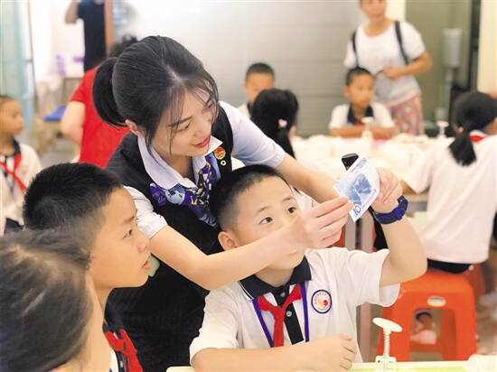 建设银行职员教小朋友们如何识别人民币假币 |