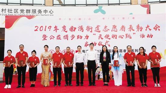 活动现场,做了23年志愿者的张青莲、吴昭文、张清同、薛明亮、苏安佳5名伙伴朗诵了原创的《献给志愿者的诗》,引起现场志愿者们的共鸣。此外,张青莲、薛明亮等获颁无私奉献奖及特别贡献奖,爱心企业家、深圳市汤姆逊控股集团有限公司董事长赵志明获颁“南湾街道义工联名誉理事长”聘书。 据悉,近年来,南湾志愿服务事业蓬勃发展,取得了令人瞩目的成绩。全街道注册义工已达30716人,其中省五星级义工1名、市五星级义工33名;建立团体义工队84支,建成社区U站、城市志愿服务站I城、社区特色志愿服务站等各类志愿服务站点11个,基本建成10分钟志愿服务圈;志愿者每年服务社会的时间超过49万小时。他们大力弘扬“奉献、友爱、互助、进步”的志愿服务精神,在提升城市文明、促进社会和谐等方面发挥了积极作用,已经成为辖区精神文明建设的一张闪亮名片。无论是春运车站服务、3·5学雷锋志愿服务、清明节墓园服务,还是日常交通安全劝导、垃圾分类宣传、“治水提质”巡河护河行动、消防安全宣传、骑电动车戴安全帽劝导等助力街道基层治理服务活动,走在辖区的哪一个角落,都能看到志愿者们在传递爱心、挥洒汗水。志愿服务成了南湾街道一种风尚和潮流,每一位红马甲的身影,都在传递着社会主义核心价值观,彰显着精神文明的正能量。 表彰大会后,公益捐步助力“天使的心跳”活动正式启动。近300名志愿者集体徒步淘金山绿道,用自己的脚步助力“天使的心跳”。现场志愿者们纷纷表示,将坚守志愿服务的初心,继续弘扬“奉献、友爱、互助、进步”的志愿服务精神,播撒爱心火种。(李薇 江仕平)