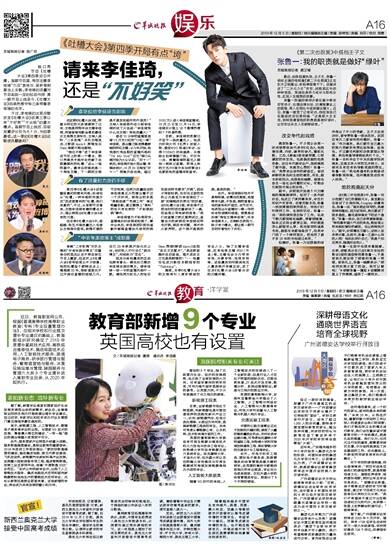 2019年12月5日/星期四/ 娱乐编辑部主编/责编 邵梓恒 / 美编 肖莎 / 校对 周勇