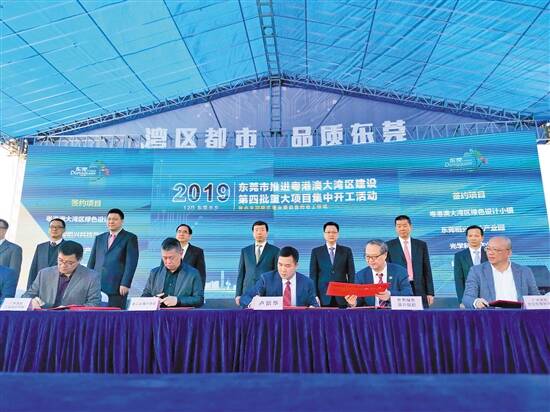文/图 羊城晚报记者 唐波 12月12日上午,“东莞市推进粤港澳大湾区建设第四批重大项目集中开工仪式”在道滘镇水乡科创中心西广场举行。本次集中开工的市重大项目共43个。市委书记梁维东、市长肖亚非、常务副市长白涛等领导出席活动。 A重大项目建设如火如荼 今年是东莞全面开展“执行力建设年”。市长肖亚非致辞表示,虽然现在已进入严冬,但东莞的建设仍是热气腾腾,重大项目建设如火如荼,热潮一波接一波。“大发展需要大投入,大投入需要大项目,全市各级各部门要做好重大项目的招引、建设和储备工作,全程做好店小二和服务员,打造重大项目的东莞效率、东莞速度、东莞服务。” 记者了解到,本次集中开工的项目中,产业项目37个,总投资约420亿元;民生保障项目3个,总投资约12亿元;基础设施项目2个,总投资约19亿元;城市更新项目1个,总投资约27亿元。在前三次重大项目集中开工活动中,轨道交通1号线、松山湖材料实验室、紫光芯云产业城一期、京东都市科技金融创新中心等一大批重大基础设施和招商引资重特大项目开工建设,有效拉动了全市固定资产投资快速增长,为东莞高质量发展提供了重要支撑。 作为本次集中开工仪式的举办地,水乡功能区16个重点项目签约,协议总投资571.8亿元,其中11个重点项目在首期启动区落户,协议总投资455亿元,涵盖创新型产业、先进制造业、现代服务业等领域。作为东莞着力打造的五大战略平台之一,水乡功能区由此按下加速键,驶入快车道,迎来了高光时刻。 B项目开工进度 远超预期 据东莞市重大办统计,今年1—11月,市重大项目完成投资约667亿元,完成年度目标任务的95%,同比增长21%;新开工建设重大项目93个,同比增长76%;建成投产重大项目49个,同比增长123%。 按照东莞市委、市政府年初的部署,“2019年计划新开工重大建设项目114个,总投资1765亿元”。而目前,东莞已经集中开工136个重大项目,总投资2520.94亿元。无论是个数,还是总投资,东莞不但圆满完成年初定下的任务,还远远超出了年初的预期。