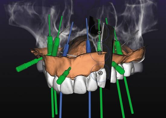 除了舒眠麻醉诊疗,无痛种牙得以实现的另一个不可缺少的技术是数字化种植技术,即科学获取缺牙者口内情况和数据后,专家通过电脑反复设计和模拟其植体受力的均衡和植体植入的角度、深度等问题,输出数字化导板辅助种植,无需翻开牙龈定点植入,伤口只有米粒大小,术后当天就能正常进食。