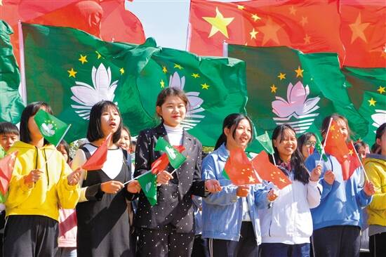 ▲珠澳青年进行快闪,庆祝澳门回归祖国20周年 |