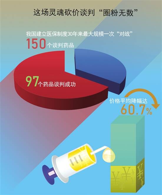 这场“圈粉无数”的谈判是我国建立医疗保险制度30年以来最大规模的一次“对战”:150个谈判药品中,共有97个药品谈判成功,价格平均降幅达60.7%,其中包括22个抗癌药,7个罕见病用药,14个糖尿病、乙肝、丙肝、风湿性关节炎等慢性病用药,4个儿童用药。