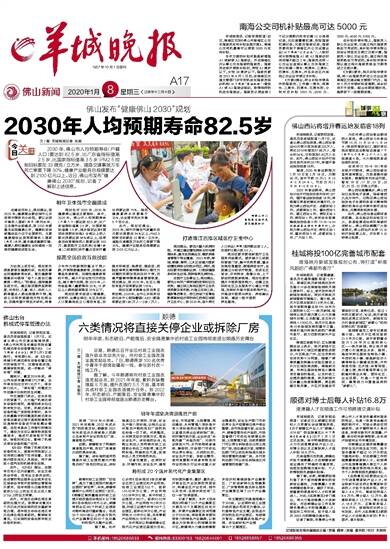 2030年,佛山市人均预期寿命(户籍人口)要达到82.5岁,比广东省指标值高2.5岁,比国家指标值高3.5岁;PM2.5控
