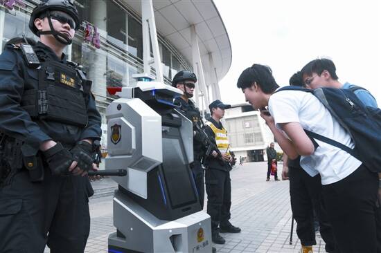 羊城晚报讯 昨日,广州市海珠客运站广场上,一台外形硬朗、正在自主巡逻的警用机器人吸引了不少旅客驻足观看。原来,这台机器人是广州海珠警方春运前夕在海珠客运站投入使用的新一代警用AI-2000机器人“平平警官”,它将协助警方进一步做好2020年春运安保,服务广大旅客。 文/付怡、武慧慧、杨秋明、张毅涛 图/林桂炎