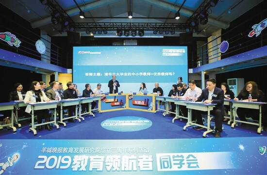 “教育领航者同学会”是羊城晚报教育发展研究院创立的教育界年度“大趴”——邀请校内外“掌门人”围绕年度最热教育话题展开答辩,借鉴《奇葩说》轻松有趣的形式,口号是有趣、有料、有爆点,让校长们换一种身份思考问题,换一种方式回应热点。
