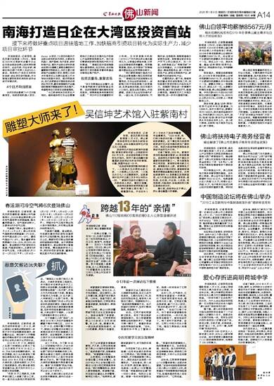 羊城晚报讯 记者张闻、通讯员梁沛玲摄影报道:1月8日,佛山紫南吴信坤艺术馆举办新馆志庆活动,这标志着吴信坤艺术馆正式入驻紫南。