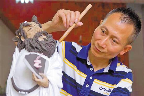 制图/陈日升 文/图 羊城晚报记者 张韬远 1月9日,“非遗璀璨,薪火相传·中国工艺美术大师黄志伟师徒作品展在顺德容桂正式开幕。中国工艺美术大师黄志伟携近40位弟子,用师徒联展的形式集中展示石湾陶塑的精髓。开展前,10余名新徒弟奉茶向黄志伟行礼拜师,希望跟着师傅学习石湾陶塑的技艺。传统的拜师礼的背后,是石湾陶艺薪火相传的传承。 “石湾公仔黄”名声在外 从1989年,23岁的黄志伟考入广州美院雕塑专业,开始接触陶瓷艺术,到2018年,黄志伟被评为“中国工艺美术大师”,收获了工艺美术行业最高荣誉。30多年里,靠着刻苦钻研和不断创新,黄志伟成为了石湾最负盛名的陶瓷雕塑大师。在几十年如一日的创作实践中,黄志伟还摸索出了属于自己的独特艺术风格,尝试用泥条作线,勾勒陶塑,自创了线塑的陶艺手法,还因此申请了国家专利。 作为名声在外的“石湾公仔黄”陶艺字号,吸引了不少人慕名前去拜师。虽然,创作工作十分繁忙,但是对于陶瓷技艺的传承,黄志伟却丝毫不敢马虎。“师傅基于自身多年经验的一点点拨,往往能让陶艺师豁然开朗,对于年轻陶艺师的成长意义重大。” 黄志伟不仅收徒授艺,还奔波于全国各地博物馆,义务做讲座,希望将石湾陶瓷的名声推广出去。近年来,黄志伟在全国十几个城市的博物馆或者图书馆做讲座。此外,黄志伟还活跃在当地各中小学和高校里。他不仅会去给中小学生上陶艺课,还会在佛科院、广州市轻工技师学院这样的学校上课。“我们需要传承艺术,搭建平台,做些努力,让更多人欣赏到陶瓷艺术的美,才能让石湾陶瓷走得更远。”黄志伟说。 拜师的年轻人越来越多 对于传统技艺的传承,最怕的就是从业人员青黄不接。不过,石湾陶瓷却似乎没有这种烦恼。近年来,找黄志伟拜师的年轻人越来越多。 曹锋明是石湾陶瓷颇具代表性的师傅之一,也是黄志伟诸多徒弟当中的一个。1997年,他从梅州来到佛山,开始接触石湾陶瓷,到如今已经23年,其作品多次获国家级、省级金、银奖。 曹锋明与石湾陶瓷的结缘颇为意外。有一年,曹锋明在佛山工作的哥哥,过年时,带了一件陶瓷小玩具回家,便是石湾出产的生肖陶瓷。这是曹锋明第一次看到石湾陶瓷,这个惟妙惟肖的小动物,竟然能如此的生动有趣,让曹锋明对石湾陶瓷产生了浓厚的兴趣。第二年,他便和哥哥一起来佛山,希望学习陶瓷。 来佛山后,他进入到一家陶瓷厂。“一开始只能做印制、上釉等最基础的工序,晚上回去拿着泥巴自己尝试创作。”最后他成为了厂里负责创作的师傅,能够独立制作陶瓷作品。之后,曹锋明还在广州佛山都有了自己的陶艺工作室,还在广州市轻工技师学院做兼职老师,教学生们做石湾陶瓷。 不过,随着对陶瓷艺术的接触越来越深,曹锋明逐渐感觉遇到了瓶颈,很难继续提升。“之前,我从来没有跟过师傅系统的学习,都是自己一个人摸索学习,成长得很慢。”曹锋明说,后来他结识了黄志伟很快就决定拜他为师。希望跟着黄志伟学习其独创的线塑手法,提升自己对于陶瓷艺术的技艺与理解。