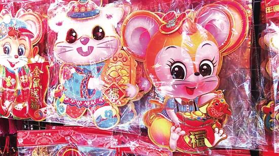 今年是鼠年,以老鼠为主题的年货特别多,无论是松鼠还是以老鼠或松鼠为蓝本设计而成的卡通形象,如米老鼠、比卡超等都成为新春布置的新宠。工艺方面也是多种多样,立体图案、剪纸、植绒、浮雕式设计等,可以满足不同喜好买家的需求。