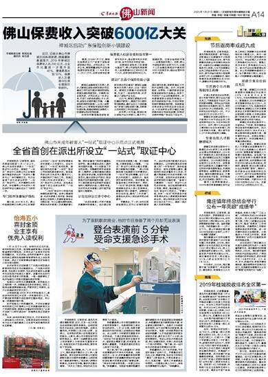 近日,记者从佛山市禅城区经科局获悉,根据最新数据显示,2019年禅城区保费收入达240亿元,占全