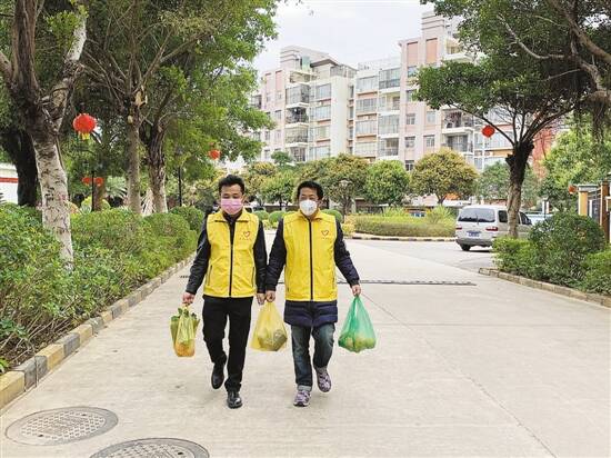 文/羊城晚报记者 林海生 防疫期间,除了医护人员的白大褂,路上站点的藏青色警服,惠州街头还涌现了不少红、黄两种颜色的身影。他们日夜坚守街道社区防疫关口,义务“带货”送上门,他们是惠州的党员突击队与志愿者队伍,红黄二色也成为防疫一线上的风景线。 讲述人:志愿者辉哥: 跑腿“代购”服务千户业主 我是惠阳秋长东方新城小区的一名业主,大家都叫我辉哥。我们小区是秋长最大的小区,现住有1500户,业主关系都挺好的。这两年,小区的志愿服务活动不断增多,成立了志愿服务队,退休之后我也入了队,成为100多名志愿者中的一位。 “少出门,不给政府添乱”是我们普通民众应该做的事情。但是大家都不出门,一日三餐的食材怎么解决?我跟几个经常一起做义工的业主商量后,决定组建采购队伍,从大年初二开始,为其他业主“代购”日用品、食材。 每天在业主群里,大伙儿通过“接龙”的方式,写上自家需要的食材物品,统计完我们就去市场采购,回来微信通知业主们下楼取菜。刚开始每天采购一次,后来需求增多,改成每天2~3次。 每天市场上的肉菜品种不一样,并不能完全按照需求来买,前几次我们都在群里及时跟大家反馈,邻居们很客气,说我们看着办就行,对我们放心。对一些处于隔离期不便外出的湖北籍邻居,我们都是将肉菜送到他们家门口,离开后再由户主自取。非常时期,大家互相帮助,一定能渡过难关。