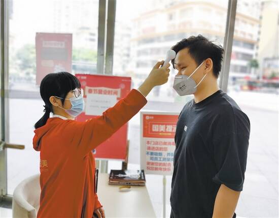 同时,广州国美实行员工每日健康监测制度,要求各公司以中心为单位建立工作人员体温监测登记,将体温在37.2摄氏度以上的员工或接触人员异常情况上报应急工作组,协助员工及时到就近的发热门诊就诊,并就3天以来的密切接触人员及活动范围路径等进行统计报告。