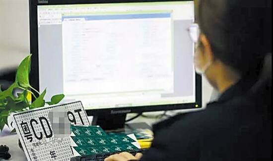 车管所工作人员在后台仔细核查资料信息,审核通过后,打印车辆临时号牌 |