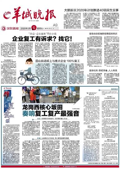 截至3月3日,园山街道辖区192家规模以上企业、78家重点企业(包括亿元企业59家、“龙岗区200强企业”19家)复工率达100%。