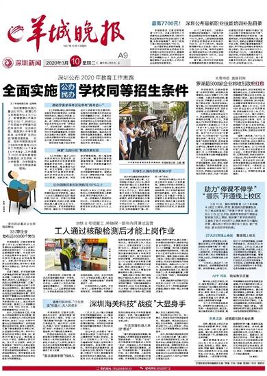 羊城晚报讯 记者沈婷婷报道:3月9日,记者从深圳市人力资源和社会保障局获悉,该局于近期在官网开设了“人社战疫企业招聘服务专题”,并在深圳市公共就业服务平台启动了“2020年深圳市重点企业