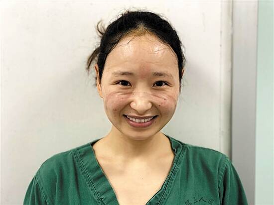 脸上还留着口罩压痕的杨娜 |