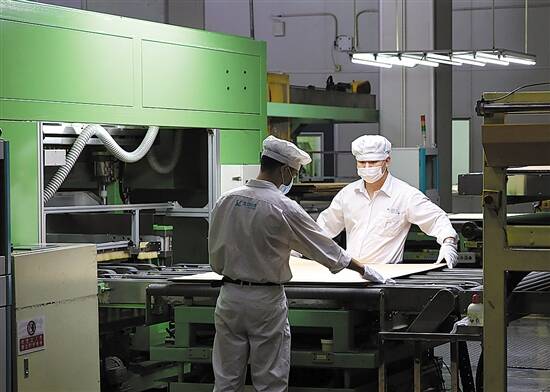 东莞生益科技生产车间已恢复紧张有序生产 羊城晚报记者 王俊伟 摄 |