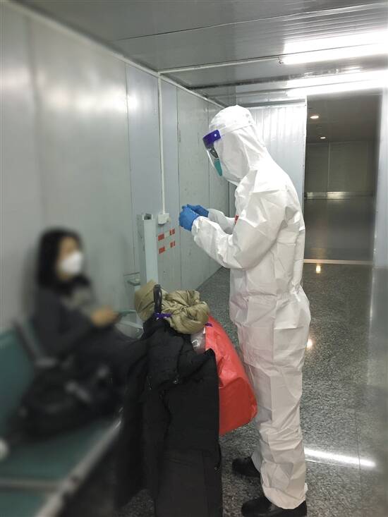 在白云机场口岸新冠肺炎疫情防控一线,从2月2日支援白云机场至今,这位佛山海关最年轻的党员以“钉钉子”精神坚守在国门最前线。 支援白云机场一天做50多次排查 白云国际机场是疫情防控重要战场。1月24日以来,白云国际机场日均出入境人员约4.5万人次,人员流动性大,通关速度要快,病例排查风险高。根据广州海关的统一安排,大年初四凌晨五点,当家人还在睡梦中时,陆国韬轻轻掩上门,踏上了前往白云机场口岸的征程。 作为佛山海关支援广州白云机场一线的年轻干部,1992年出生的陆国韬也是佛山海关里最年轻的党员。这次,他被安排在风险最高、任务最重的卫生检疫岗位。穿上防护服,戴上防护口罩、面罩和医用乳胶手套后,他和同事必须对有症状旅客进行体温监测和风险排查,不能遗漏任何一个可能存在的传染源,确保疫情不经国门传入和传出。 2月22日凌晨,又一趟国际航班抵达白云机场,现场关员发现机上一名入境乘客有咳嗽、呼吸缓慢、反应迟钝等症状。经请示带班领导,陆国韬与同事赶紧对这名乘客进行医学排查。从指导填写《健康申明卡》到测量体温、询问旅行史、采样……在排除该旅客感染新冠肺炎嫌疑后,陆国韬和同事都松了一口气,“说实话,心里真是捏了一把汗。” 像类似的排查任务,陆国韬一天至少要进行50多次,最多的一次24小时排查了100多人。经常是一整天仅能休息3到4个小时,甚至顾不上吃饭。“实话说,不累是假的,要说心里没有压力,也是不可能的事情。我是支援干部中最年轻的党员,在防控疫情的关键时刻,我就应该守护在国门最前线。”陆国韬说。 “我最害怕判断和操作失误” 自从我国1月25日重启填写健康申明卡制度以来,出入境人员特别是入境人员自行申报有症状的旅客激增,陆国韬的工作量持续倍增。 有时候几个航班集中在一个时间到达,近600名旅客同一时间进入入境通道,有多位旅客需要进一步排查。为保证排查工作顺利进行,陆国韬经常顾不上吃饭。防护服一穿就是一整天,喝水、上厕所都不方便,所以干脆少喝水甚至不喝水。 “每天面对高风险人群,最怕就是判断错误、操作失误”,陆国韬坦言,自己最害怕不小心感染了病毒,传染给家人,“此外,我们每个岗位的检查都是环环相扣,如果我这个岗位出了疏漏,患病的乘客就有可能感染后面继续检查的同事,就算是为了大家,也千万不能漏了一个。”为此,每次检查病例,打起十二分精神的陆国韬都一丝不苟,往往做完一天工作,松下一口气才感觉到疲惫,“能忘记疲惫,也挺好的。”他笑着说。 陆国韬表示,每天站上岗位,他最喜欢的就是看着朝阳下航班的降落,“来了最前线,就要迎接应有的挑战,打败了恐惧,我们才能信心倍增。” 一线党旗飘