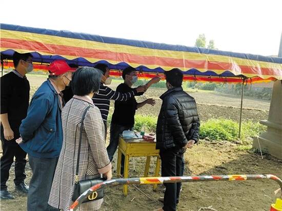 陈新彬与村干部一起搭建临时监测哨卡 |