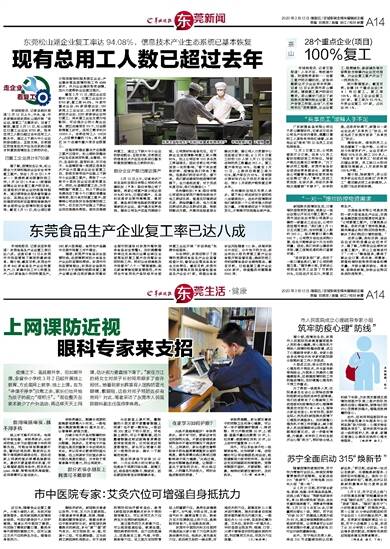 羊城晚报讯 记者文聪报道:人手不足、物流通行难、防疫物资紧缺……在复工复产的关键时刻,这些问题都让不少企业束手束脚。记者12日从东莞市茶山镇获悉,围绕复工复产的