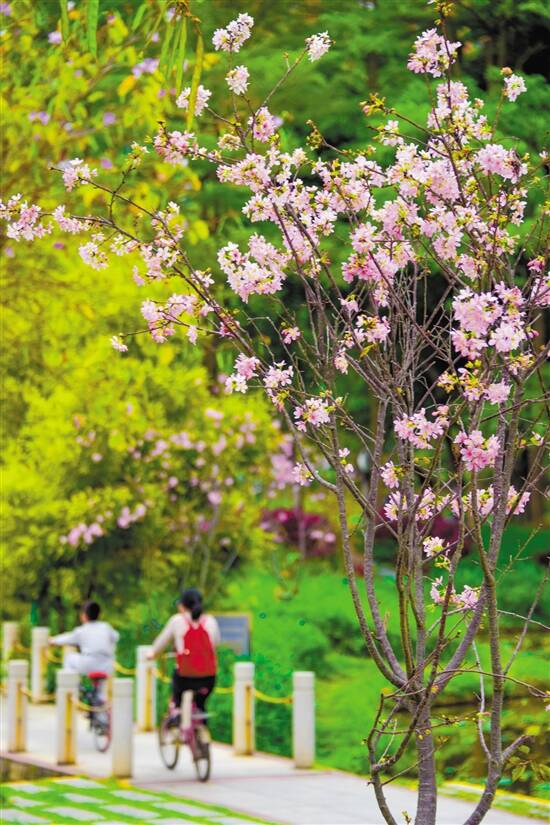 盛放的广州樱把亚艺公园禅荷花岛点缀得春意盎然 |