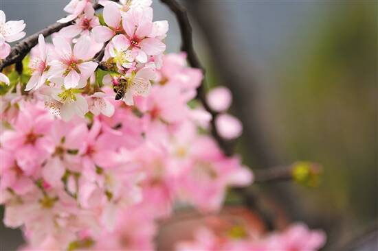 小蜜蜂忙碌地为樱花采蜜 |