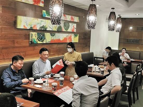 市长朱伟(左一)在岭南天地餐馆进行消费 |
