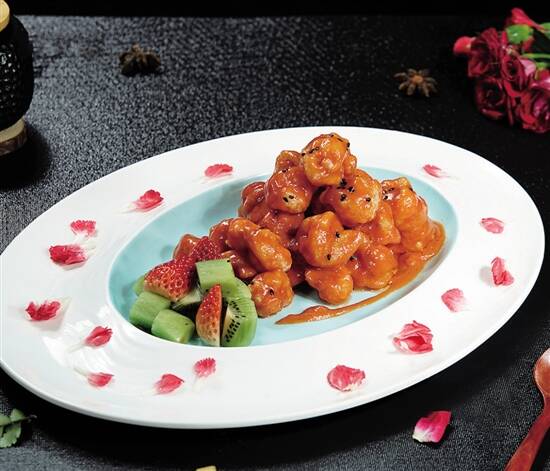 做法:该餐厅的大厨说,把鲜虾裹好生粉放进油锅,慢火炸至金黄色;倒上由炼奶、卡夫酱和番茄酱搅拌而成的酱料拌匀;最后可放上奇异果、小番茄进行装点,咕噜虾就做成了。其口感鲜嫩酸甜,老少皆宜。