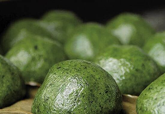 客家人会采下艾叶,和蒸熟后的粳米或糯米拌在一起,舂成米膏,以花生或芝麻作馅,团成一个个绿绿的小圆团,放进锅里蒸熟。艾糍色泽翠绿,清香扑鼻,甘中带苦,质柔有韧性,食而不腻。风味独特,让人流连忘返,是春天最应季的中式甜点。