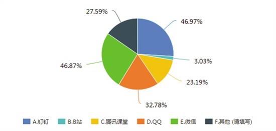 46.87%的小学生选择微信,46.97%的小学生选择钉钉。 ▶▶▶ |