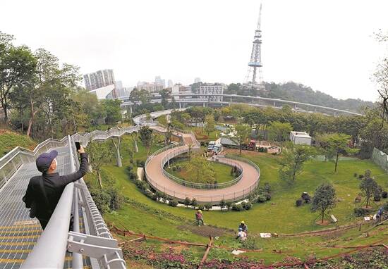 通讯员 穗园林宣 图/羊城晚报记者 梁怿韬 白云山—麓湖—越秀山连通工程(简称云道)6.2公里主体工程将于“五一”正式开放。届时市民可以步行从中山纪念堂、越秀公园、花果山到达麓湖,未来更可直达广州花园、白云山。此外,白云山去年至今拆除违法建设和影响景观建设51.05万平方米,已完工的新门岗也已亮相。 游客测温后可云道尝鲜 记者从广州市林业和园林局了解到,云道6.2公里主体工程、配套绿化已基本完成,正在完善相关配套设施,“五一”正式开放。通过部分路段的试开通,市民游客目前已可提前体验云道带来的乐趣。 4月8日,记者在试开通的云道(越秀公园北门至花果山公园段)看到,云道上有专程而来尝鲜的市民,欣赏越秀山和花果山一带的“双塔绿景”;也有“抄近道”的街坊,利用“云道”通勤。由于云道在花果山附近有一段圆形的引桥设计,正对着越秀山和花果山两座电视塔,不少摄影发烧友利用这段圆形引桥叠加电视塔背景,拍照取景创作。 早在去年12月,该段云道已基本建成。相比当初,记者发现该段云道的设施正在陆续完善。云道的地面和桥面扶手,增加了很多指示方向以及目的地距离的指示牌。在云道花果山公园段,设有一个分类垃圾桶供游客投放垃圾。在云道越秀公园北门处,一座装配式公厕正在建设中,有望在“五一”前落成使用。 针对此前建设时有市民提议无障碍设施不足的问题,记者发现云道在越秀公园北门至花果山公园段,设置有可供轮椅通过的斜坡。此段云道两旁均有工人为补充绿化植物而忙碌着。 云道目前已试开通了越秀公园北门、花果山公园、雕塑公园等出入口。市民游客可在越秀公园和雕塑公园对外开放的时间段,经现场安保人员测量体温后,提前踏入云道尝鲜。 白云山继续“拆违复绿” 白云山周边地区的“颜值提升”,很大程度上和2019年至今持续进行的“拆违复绿”工作有关。记者8日从广州市城市管理和综合执法局获悉,自去年3月启动相关工作以来,广州各级城管部门至今已在白云山地区拆除违法建设51.05万平方米。2020年,白云山拆违复绿工作将继续推进。 部分去年拆违后空出的地块,复绿工作仍在进行中。8日,在位于广州大道北和梅园路交界的白云山梅花园门岗广场,记者看到内部装修和绿化种植基本完工。位于梅园路深处的白云山梅花园门岗,工人们正为新门岗建设而忙碌。新建成的柯子岭门、西门、翠竹园门等白云山门岗增加绿色开敞空间,与白云山融于一体。 据介绍,白云山红线内及主要门岗周边复绿8.92万平方米。白云山南门、西门、北门等6条主要进山通道路面、人行道、绿化及沿线建筑整饰已完成。同时,白云山周边白云大道、同泰路、广州大道环境整治及绿化提升工程实施,新增和改造绿化面积6.2万平方米,建成缓跑径2.6公里。