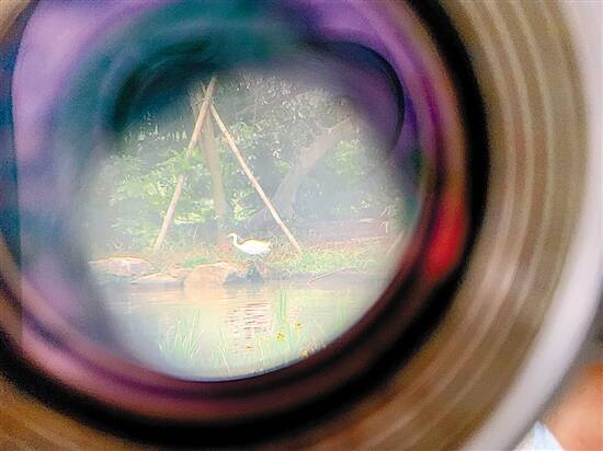 在丰渚园,通过望远镜就能看到鸟岛上的鸟 |