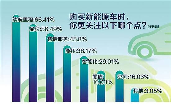 就新能源汽车目前的现状,羊城晚报向1310位读者做了调查,很多消费者在接受调查时表示,充电不方便是影响其放弃购买新能源车的重要原因,还有66.41%的消费者表示购买新能源车时更关注续航里程。